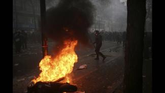 Η γαλλική αστυνομία έκανε χρήση δακρυγόνων και εφόρμησε εναντίον διαδηλωτών, που είχαν καλυμμένα τα πρόσωπά τους κι έσπασαν πολλές βιτρίνες, σε κοντινή απόσταση από την πλατεία της Δημοκρατίας, στο ανατολικό τμήμα της γαλλικής πρωτεύουσας.
