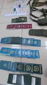 Η αστυνομία, κατά τις έρευνες, εντόπισε μεταξύ άλλων, 41 διαβατήρια, εκ των οποίων τα περισσότερα πλαστά, 12 κινητά, 1 τάμπλετ, 1 τουφέκι ελεύθερου σκοπευτή και κιάλια νυχτερινής όρασης...