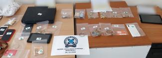 Κατασχέθηκαν μεταξύ άλλων πλήθος κοσμημάτων, κινητών τηλεφώνων, καταγραφικό κλειστό κύκλωμα, καθώς και το χρηματικό ποσό των -1.075- ευρώ.