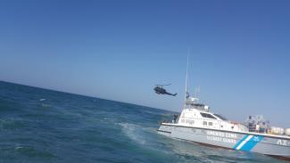 Στο σημείο βρίσκονται δυνάμεις του Λιμενικού, με τρία σκάφη κι ένα περιπολικό όχημα, ασθενοφόρα αλλά και ελικόπτερο.
