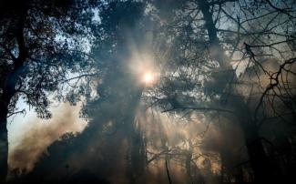 Η ύφεση των ανέμων, αργά το απόγευμα, και οι ρίψεις νερού που έκαναν τα πυροσβεστικά αεροσκάφη κι έχουν μειώσει το θερμικό φορτίο, έχουν ως συνέπεια η φωτιά να κινείται με μικρότερη ταχύτητα.