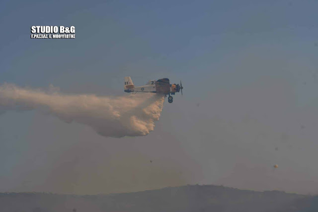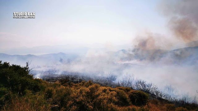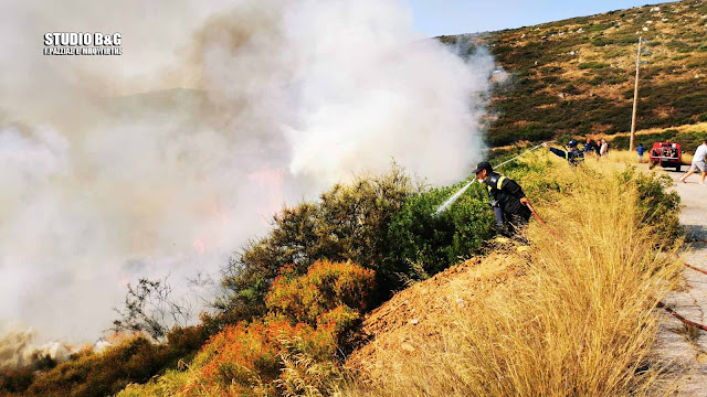 Στην πυρκαγιά συνδράμουν και υδροφόρες του Δήμου Ναυπλιέων, ενώ στο σημείο βρίσκεται και ο Δημαρχος Ναυπλιέων Δημήτρης Κωστούρος.