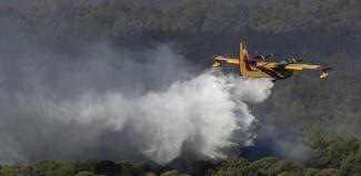 Συγκεκριμένα στο σημείο επιχειρούν δύο ελικόπτερα, δύο αεροσκάφη ενώ επιστρατεύτηκε και το αεροσκάφος Beriev.