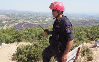 Οσο μιλάμε με τους πυροσβέστες, σε αυτό το ύψωμα έξω από το Καπανδρίτι ο άνεμος μεταφέρει τη μυρωδιά του καμένου πεύκου. Το κράνος, τα γάντια και το καπέλο του κ. Δημητρόπουλου έχουν μαυρίσει από την κάπνα των περασμένων ημερών. Ο διοικητής του μας εξηγεί ότι στο κρίσιμο στάδιο, αφού είχε τεθεί υπό έλεγχο η φωτιά και δεν υπήρχαν πλέον ενεργά μέτωπα, προσπαθούσαν να οριοθετήσουν τις καμένες εκτάσεις με διαβροχές. «Υπάρχουν καύτρες που μπορεί να κάνουν κηλιδώσεις (σ.σ.: έτσι ονομάζεται η μεταφορά καύσιμης ύλης σε μεγάλες αποστάσεις από τον άνεμο) και να ξεφυτρώσει φωτιά σε σημείο που πριν ήταν ανέγγιχτο», λέει.