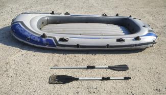Κατασχέθηκε η παραπάνω πλαστική βάρκα και δύο κουπιά.