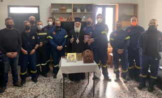 Από τη μεριά του ο Διοικητής της Πυροσβεστικής Υπηρεσίας, εξέφρασε στον κ. Ιερόθεο τις προσωπικές ευχαριστίες αλλά και των συναδέλφων του, αφενός μεν για την άμεση ανταπόκρισή του στην πρόσκληση και αφετέρου για την έμπρακτη στήριξη του έργου τους. Για τον λόγο αυτό του προσέφερε τιμητικά την αναμνηστική πλακέτα του Σώματος.