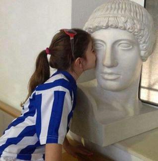 Ένα χρήστης του facebook ανέβασε αυτή την φωτογραφία με αυτή την πραγματικά γλυκύτατη μικρή να φιλάει την προτομή του Απόλλωνα, τον σημαντικότερο θεό της Αρχαίας Ελληνικής Μυθολογίας μετά τον Δία.