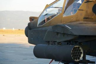 Ένας τεχνικός αποσυνδέει το ειδικό σύστημα επικοινωνίας με τον πιλότο. Οι κινητήρες περνάνε σε πλήρη ισχύ! Κυβερνήτες και συγκυβερνήτες κινούν με το ειδικό σύστημα που υπάρχει στο κράνος που φορούν στο κεφάλι τους όλα τα ηλεκτρονικά συστήματα με τα οποία "βλέπουν", ακόμη και μέσα στο απόλυτο σκοτάδι... Άλλα δύο Apache στο βάθος είναι στον αέρα. Είναι από την αδερφή μονάδα, τις "Νυχτερίδες". Ο αέρας από τα στροφεία μάς χτυπάει δυνατά και μάς ρίχνει στο έδαφος... Απογείωση.
