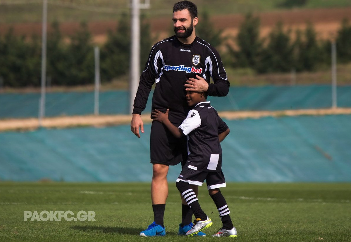 Προσφυγόπουλα, παιδιά οικογενειών που έφυγαν από τα σπίτια τους για μια καλύτερη ζωή, βρέθηκαν την Δευτέρα στο προπονητικό κέντρο της Νέας Μεσημβρίας. Ετσι 12 μικρά παιδιά έκαναν προπόνηση μαζί με τους ποδοσφαιριστές του ΠΑΟΚ, γέλασαν, πέρασαν μαζί τους λίγη ώρα ευχάριστα, ξεχνώντας για λίγο τα πολλά και σοβαρά προβλήματα που βιώνουν καθημερινά.