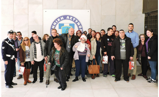 "Σήμερα ο Σύλλογος Γονέων- Κηδεμόνων και Φίλων ΑμεΑ "Ανοιχτή Αγκαλιά", με τη συνδρομή της "Δράσης Αστυνομικών για τα Δικαιώματα του Ανθρώπου", είπε τα χριστουγεννιάτικα κάλαντα στα γραφεία της ΓΑΔΑ και των Δ/νσεων Αστυνομίας Αθηνών, Άμεσης Δράσης Αττικής και Ασφάλειας Αττικής!