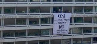 Δεν έχει προηγούμενο. Το υπουργείο Οικονομικών ανάρτησε πανό με το «Οχι» το οποίο καταλαμβάνει δύο ορόφους.