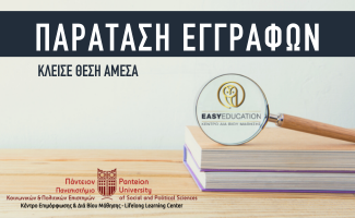 Οι επιμορφώσεις υλοποιούνται εξ αποστάσεως σε συνεργασία με το Κέντρο Δια βίου Μάθησης Easy Education, www.easy-education.gr αδειοδοτημένο από το Υπουργείο Παιδείας, Έρευνας και Θρησκευμάτων / Γενική Γραμματεία Δια βίου Μάθησης (Γ.Γ.Δ.Β.Μ.), με αριθμό αδειοδότησης 192044348.