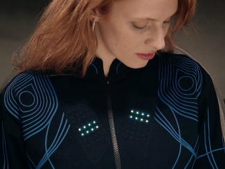 «Μέσα στην μπλούζα, η οποία, παρεμπιπτόντως είναι κατασκευασμένη αποκλειστικά από ύφασμα, δηλαδή δεν περιέχει καλώδια αλλά μόνο΄έξυπνα υφάσματα', υπάρχει ένας συνδυασμός από μικροηλεκτρονικά… πολύ λεπτά και ευέλικτα και αγώγιμα υφάσματα. Όλα αυτά τα μικρά ηλεκτρονικά μοτέρ συνδέονται με αυτά τα αγώγιμα υφάσματα ώστε το ρούχο να είναι μαλακό και ελαστικό», εξηγεί η Ροσέλα.