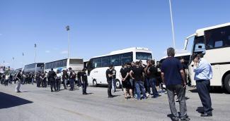Αστυνομική επιχείρηση για να εμποδιστεί η μετάβαση δυο τουριστικών λεωφορείων με οπαδούς του ΠΑΟΚ από τη Θεσσαλονίκη προς τον Βόλο.