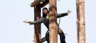 Ο ίδιος ανεβασμένος στον στύλο φωνάζει για την ελευθερία του αλλά και την μη επαναπροωθηση του στην Τουρκία