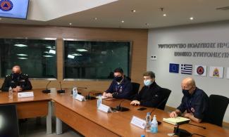 Σε υπηρεσιακό επίπεδο, στη σύσκεψη έλαβαν επίσης μέρος ο Γενικός Διευθυντής Συντονισμού της Γενικής Γραμματείας Πολιτικής Προστασίας, Φοίβος Θεοδώρου, ο Διευθυντής Σχεδιασμού και Αντιμετώπισης Έκτακτων Αναγκών, Δημήτρης Αλεξανδρής, ο Διευθυντής Διεθνών Σχέσεων, Αντιπύραρχος Σπύρος Γεωργίου, καθώς και η Σύμβουλος Επικοινωνίας και Στρατηγικού Σχεδιασμού, Ελένη Μπόμπου.