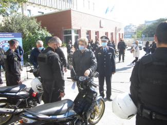 Τη νέα υπηρεσία δίκυκλης αστυνόμευσης «Δράση», που δραστηριοποιείται το τελευταίο δίμηνο και στη Θεσσαλονίκη, με στόχο την αντιμετώπιση της εγκληματικότητας, παρουσίασε ο υπουργός Προστασίας του Πολίτη, Μιχάλης Χρυσοχοΐδης, ο οποίος επισκέφθηκε, σήμερα το πρωί, το Αστυνομικό Μέγαρο Θεσσαλονίκης, όπου είχε σύσκεψη με αξιωματικούς της Ελληνικής Αστυνομίας.