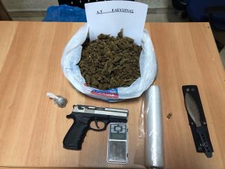Κατόπιν τούτου διενεργήθηκε εκτενέστερος νομότυπος έλεγχος-έρευνα οπου ανευρέθησαν και κατασχέθηκαν 1 κιλό χασίς 1 ηλεκτρονική ζυγαριά ακριβείας νάιλον συσκευασίες 1 πιστόλι 9mm και ενα μαχαίρι 21cm. Για την αξιοποίηση της πληροφορίας όλοι οι προαναφερόμενοι εργάστηκαν πέραν του κανονικού του ωραρίου τους με ηθική αμοιβή πάντα τα ευμενή σχόλια των πολιτών.
