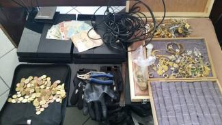 Η λεία που αποκόμισε περιλαμβάνει χρηματικά ποσά, ηλεκτρονικές συσκευές [ laptop , υπολογιστές παλάμης ( pda )] και επιμεταλλωμένα κοσμήματα, η αξία των οποίων υπερβαίνει τις 8.500 ευρώ.
