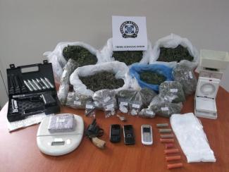 Σε νομότυπες έρευνες που πραγματοποιήθηκαν στις οικίες των μελών της εγκληματική ομάδας, βρέθηκαν τόσο στον εσωτερικό, όσο και στον εξωτερικό χώρο αυτών και κατασχέθηκαν: