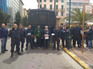 Για την ολοκλήρωση της δράσης μας την Κυριακή 26/04/2020 παραδώσαμε μάσκες σε διμοιρίες της Υ.ΜΕ.Τ. και της Υ.Α.Τ. και ομάδες ΔΙ.ΑΣ. που εργάζονταν στην περιοχή του κέντρου της Αθήνας και τη Δευτέρα 27/04/2020 παραδώσαμε υλικό στην Δ/νση Υγειονομικού, καθώς και στα μπλόκα της Τροχαίας που πραγματοποιούν ελέγχους σχετικά με τις μετακινήσεις κατά τον αποκλεισμό λόγω του κορωνοϊού στο κέντρο της Αθήνας.