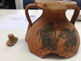 - πήλινο μικρογραφικό αγγείο και τμήμα αμφοροειδούς αγγείου, τα οποία χρονολογούνται στους Κλασσικούς και πιθανόν Ελληνιστικούς χρόνους, αντίστοιχα,