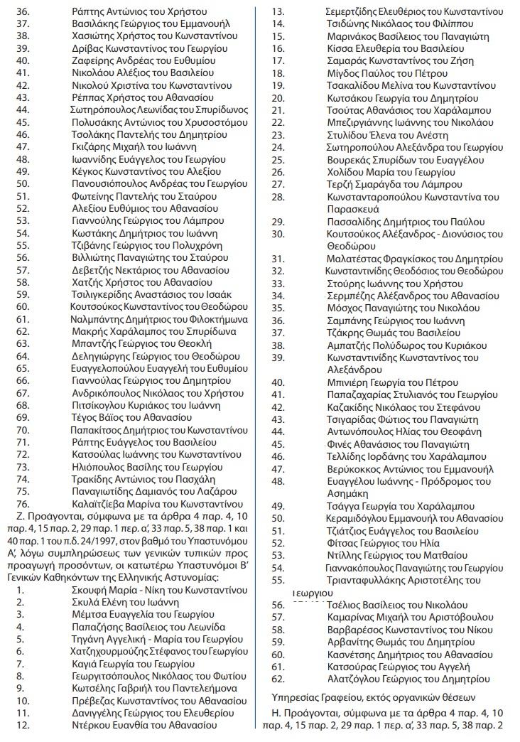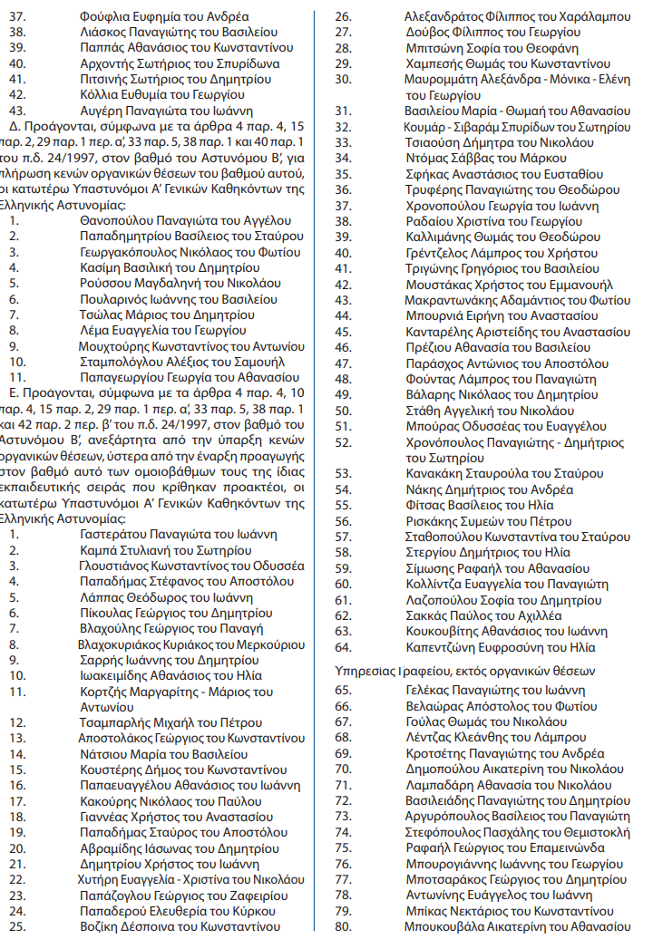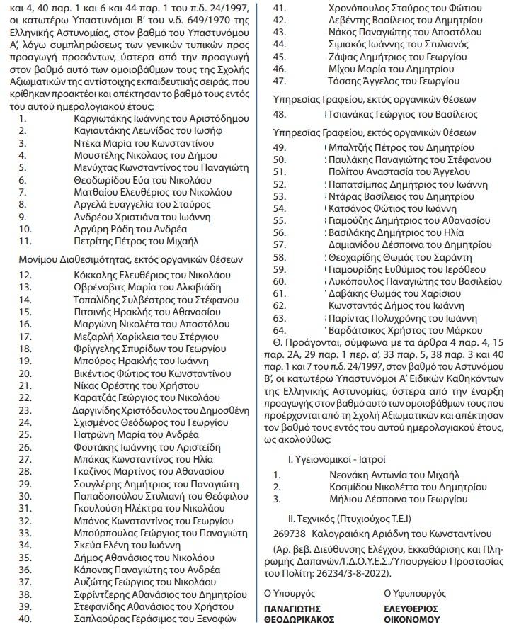 Δημοσιεύτηκε στην Εφημερίδα της Κυβερνήσεως η Υπουργική Απόφαση με τις προαγωγές Αξιωματικών της ΕΛ.ΑΣ..