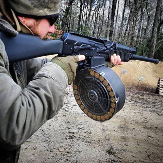 Αυτός ο τυμπανοειδής γεμιστήρας έχει σχεδιαστεί για να λειτουργεί αποκλειστικά με το κυνηγετικό όπλοVepr 12 με το πολυμερές εργοστασιακό magwell. Κατασκευάζεται εξ’ ολοκλήρου στις ΗΠΑ και τα ελατήρια είναι με επικάλυψη για την προστασία από σκουριά.