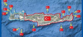 Στον χάρτη που δημοσιεύει ο Οζτούρκ εμφανίζονται στα «κόκκινα», ως τουρκικά, το Ηράκλειο, το Ρέθυμνο και η Σητεία, με τη μόνη περιοχή που να... απομένει στην Ελλάδα να είναι τα Χανιά.
