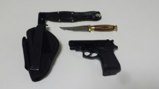 Μετά από αστυνομικό έλεγχο, διαπιστώθηκε να κατέχει στο αυτοκίνητο του ένα πιστόλι κρότου με δυνατότητα μετατροπής σε πυροβόλο όπλο και ένα μαχαίρι με μήκος λάμας 10 εκατοστά, τα οποία κατασχέθηκαν.