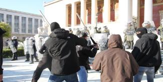 Τα περίπου 150 άτομα, εκμεταλλευόμενα την εν εξελίξει διαμαρτυρία εργαζομένων στις Σκουρίες, είχαν επιτεθεί στους αστυνομικούς που βρίσκονταν μπροστά στο κτίριο της Πρυτανείας με καδρόνια, πέτρες και πυροσβεστήρες. Οι αστυνομικοί προσπάθησαν να τους απωθήσουν με χειροβομβίδες κρότου - λάμψης και σπρέι, καθώς η εντολή είναι να μην μπει ούτε να βγει κανείς από το υπό κατάληψη κτίριο.