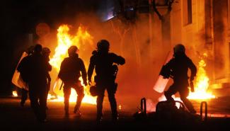 Τεταμένη παραμένει η κατάσταση στα Εξάρχεια με τους αντιεξουσιαστές να συνεχίζουν ανά τακτά χρονικά διαστήματα να πετούν βόμβες μολότοφ στις αστυνομικές δυνάμεις που βρίσκονται στην οδό Μπουμπουλίνας.