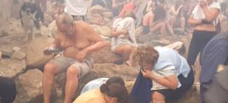 Στο βίντεο, που τράβηξε ο Νίκος Βερυκοκίδης ο οποίος βρέθηκε στο σημείο με την ηλικιωμένη μητέρα του, φαίνονται δεκάδες άνθρωποι να κάθονται στα βράχια, καλύπτοντας το πρόσωπό τους με ρούχα καθώς η ατμόσφαιρα είναι αποπνικτική και ο αέρας πολύ δυνατός.