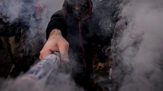Σύμφωνα με ανακοίνωση της αστυνομίας, κατά την εξέλιξη την αναμέτρησης κινήθηκε μαζί με άλλα άτομα προς την κερκίδα, όπου βρίσκονταν διαπιστευμένοι της αντίπαλης ομάδας, προπηλακίζοντάς τους, ενώ πάνω του βρέθηκε ένας αναδιπλούμενος σουγιάς, ο οποίος και κατασχέθηκε.