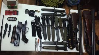 Σε άλλο σπίτι της οικογένειας, όπου κατέφυγε ο 36χρονος μετά τη ληστεία, βρέθηκαν τα ρούχα που φορούσε κατά την εισβολή στο σούπερ μάρκετ, Το κοντόκαννο δίκαννο αποσυναρμολογημένο και κρυμμένο σε νάιλον σακούλες, άλλα δυο μαχαίρια, 13 κυνηγετικά φυσίγγια και το μοτοποδήλατο της διαφυγής του. Σε βάρος του ληστή και των γονιών του σχηματίστηκε δικογραφία για ληστεία, οπλοχρησία, πρόκληση σωματικών βλαβών, παράβαση του νόμου περί προστασίας αρχαιοτήτων, κατοχή εκρηκτικών υλών, όπλων και ναρκωτικών.