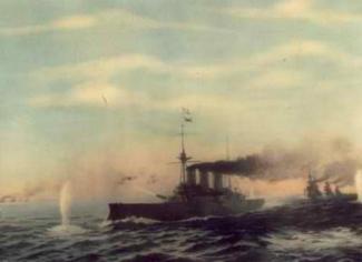 Ο ελληνικός στόλος με επικεφαλής την ναυαρχίδα θωρηκτό Αβέρωφ, ακολουθούμενη από τα θωρηκτά Ύδρα, Σπέτσες, αρχηγίδα του Μοιράρχου Πλοιάρχου Πέτρου Γκίνη και Ψαρά, και από πίσω τα αντιτορπιλλικά Αετός, Ιέραξ, Λέων και Πάνθηρ (τα αποκαλούμενα Θηρία) έσπευσε να συναντήσει τον αντίπαλο στόλο.