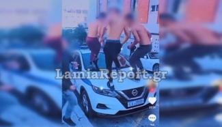 Απίστευτο περιστατικό στο κέντρο της πόλης με νεαρούς ρομά να ανεβαίνουν και να "ποζάρουν" για το Tik Tok σε καπό περιπολικού της Τροχαίας Λαμίας.