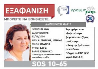 Η εξαφάνισή της έγινε γνωστή από την αδερφή της η οποία γύρω στις δυο τα ξημερώματα, πήγε στο δωμάτιο όπου κοιμόταν η 36χρονη Μαρία και διαπίστωσε ότι έλειπε. Τότε ενημέρωσε όλη την οικογένεια που κινητοποιήθηκε για τον εντοπισμό της. Οι αστυνομικές αρχές διενεργούν έρευνα για την υπόθεση.
