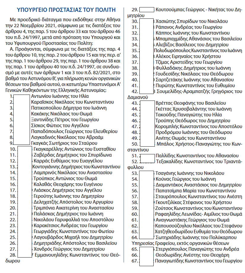 Το Policenet.gr εύχεται σε όλα τα στελέχη που προάγονται, καλή συνέχεια στη σταδιοδρομία τους.