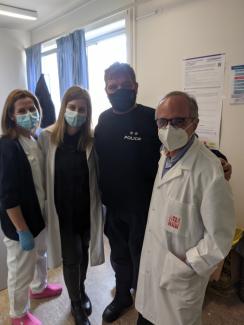 Στη φωτογραφία ο κ. Μουρτζάκης με τον ιατρό κ. Λιονή και το νοσηλευτικό προσωπικό, με τον ίδιο να δηλώνει λίγες ώρες μετά τον εμβολιασμό ότι χαίρει άκρας υγείας και νιώθει πιο δυνατός και αισιόδοξος από ποτέ, προτρέποντας τους συναδέλφους του στο αστυνομικό σώμα αλλά και όλο τον κόσμο να εμβολιαστεί σύντομα…