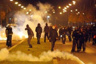 Οι διαδηλωτές πυρπόλησαν 15 αυτοκίνητα και δεκάδες κάδους απορριμμάτων, ενώ πέταξαν βόμβες μολότοφ σε παιδικό σταθμό και στο τοπικό δημαρχείο.