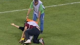 «Αν δει κάποιος το βίντεο του συγκεκριμένου συμβάντος θα διαπιστώσει αρκετά πράγματα... Το πρώτο είναι ότι αρχικά γλίστρησα στην προσπάθειά μου να βοηθήσω όσο το δυνατόν πιο γρήγορα την εξέλιξη της αναμέτρησης και έπεσα, αυτό δεν πιστεύω να το αμφισβητεί κανένας, το δεύτερο που δεν είδε κάποιος είναι ότι το πόδι του παίκτη με χτυπάει κάτω από την κοιλιά μου και στη συνέχεια πέφτω. Τελικά τον πήγα έξω από τον αγωνιστικό χώρο. Σίγουρα θα διαπίστωσαν όλοι είτε μέσα στο γήπεδο είτε από την τηλεοπτική εικόνα και την απροθυμία του ποδοσφαιριστή να ανέβει στο φορείο για την οποία κανένας δεν μίλησε. Ο άνθρωπος αυτός ήθελε να βρίσκεται κάτω στον αγωνιστικό χώρο παρά να ανέβει στο φορείο. Για τον φυσικοθεραπευτή δεν χρειάζεται να κάνω κάποια απάντηση. Το σύστημα «πέστε κάτω» ήταν σχεδιασμένο από το πρώτο μέρος. Θα σας αναφέρω συγκεκριμένο περιστατικό.