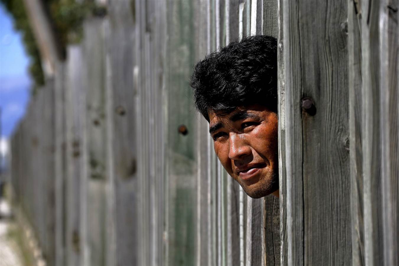4 Μαΐου 2015. Ενας Αφγανός μετανάστης βγάζει το κεφάλι του έξω από έναν ξύλινο φράχτη ενός παλιού εργοστασίου την ώρα που ετοιμάζεται να βρει έναν τρόπο να τρυπώσει σε ένα από τα πλοία που φέγυουν από την Πάτρα για την Ιταλία.