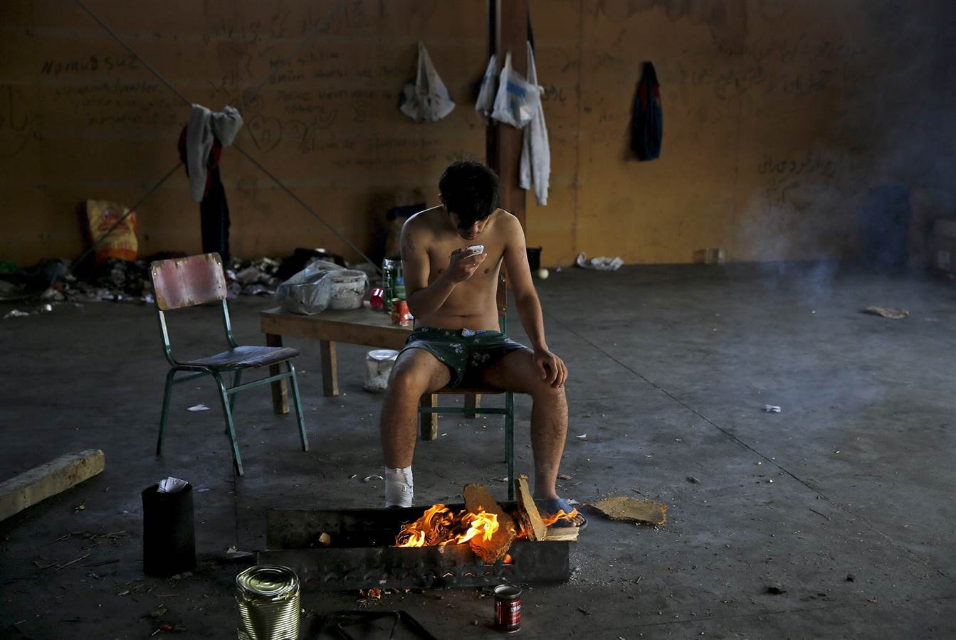 28 Απριλίου 2015. Αφγανός μετανάστης προσπαθεί να στείλει μηνύματα σε φίλους μέσα από ένα εγκαταλειμμένο εργοστάσιο όπου έχει βρει καταφύγιο μαζί με άλλους συμπατριώτες του. Κάποιοι από αυτούς έχουν μόλις φτάσει εκεί περνώντας με τα πόδια στην Ελλάδα από την Τουρκία, ενώ άλλοι έχουν ξεμείνει στην Πάτρα εδώ και δύο χρόνια.