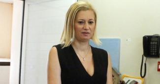 Όταν ο άνδρας των ΜΑΤ την αγκαλιάζει για να την απομακρύνει, η πρώην βουλευτής γίνεται έξαλλη και του φωνάζει «γιατί με πιάνεις».