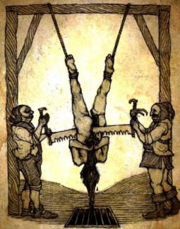 Ήταν σίγουρα μια από τις χειρότερες και πιο τρομακτικές μεθόδους βασανισμού και θανάτου στην ιστορία του ανθρώπου. Το θύμα, που ήταν κρεμασμένο ανάποδα, διαμελίζονταν αργά και βασανιστικά από τους δημίους του μέχρι να πεθάνει από αιμορραγία. Σύμφωνα με τα ιστορικά στοιχεία, οι περισσότεροι άνθρωποι που εκτελούνταν με αυτόν τον τρόπο, κόβονταν από τους δημίους τους μέχρι την κοιλιακή χώρα.