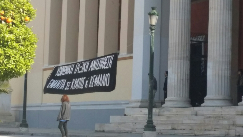 Το πρωί μια ομάδα περίπου 30 αντιεξουσιαστών προχώρησε σε κατάληψη της Πρυτανείας Αθηνών, αφού πρώτα έδιωξε τους υπαλλήλους του κτιρίου.