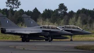 Το βίντεο δείχνει τα μαχητικά βαμμένα στα χρώματα της Πολεμικής Αεροπορίας μας, να απογειώνονται από την αεροπορική βάση Μερικιάν της Γαλλίας, πολύ κοντά στην πόλη Μπορντό, εκεί δηλαδή όπου συνεχίζουν να εκπαιδεύονται οι τέσσερις Έλληνες πιλότοι πριν τα φέρουν στη χώρα μας.