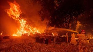 Η πυρκαγιά, που οι αρχές ονόμασαν «Σύμπλεγμα Μεντοτσίνο» και έχει εξαπλωθεί σε μια περιοχή σχεδόν ίση με το Λος Άντζελες, είναι ένα από τα 17 πύρινα μέτωπα που μαίνονται στην Καλιφόρνια και έχουν ήδη καταστρέψει 1.500 κτίρια, ενώ έχουν εκτοπίσει από τα σπίτια τους δεκάδες χιλιάδες ανθρώπους.