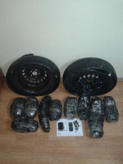 Ειδικότερα, στο πλαίσιο ειδικού επιχειρησιακού σχεδιασμού για την καταπολέμηση της διάδοσης ναρκωτικών ουσιών και κατόπιν κατάλληλης αξιοποίησης στοιχείων, εντοπίστηκαν οι ανωτέρω τις πρώτες πρωινές ώρες σήμερα σε περιοχή της Καστοριάς και σε έλεγχο που πραγματοποιήθηκε στο όχημά τους, με οδηγό και ιδιοκτήτη τον 48χρονο και συνοδηγό τον 41χρονο, βρέθηκαν -2- τροχοί αυτοκινήτου που περιείχαν στο εσωτερικό τους επιμελώς κρυμμένες, -9- συσκευασίες ακατέργαστης κάνναβης, βάρους -10- κιλών και -420- γραμμαρίων , τις οποίες κατείχαν από κοινού και μετέφεραν προς το εσωτερικό της χώρας .